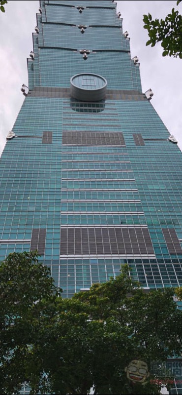 再來是經典的 101 大樓,這麼近的距離,有拍過的人應該都知道不可能整個拍下,如下圖,只能拍下不到一半的樓身: