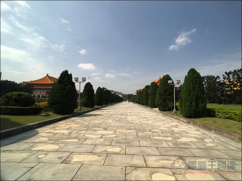 同個位置用廣角鏡拍,不僅自由廣場牌樓完全收進照片中,就連天空與地板的範圍也更廣:
