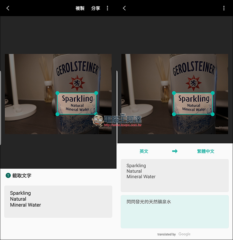 不過如果你只想要知道瓶身上的文字內容,則點選「文字」即可: