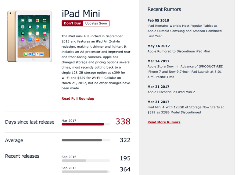 至於另一款會是什麼?iPad Mini 已經好幾年沒更新了,MacRumors 也顯示 Don’t Buy 的紅色字樣,所以也是有一定可能性:
