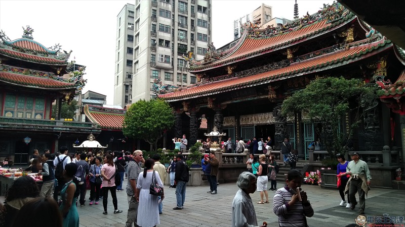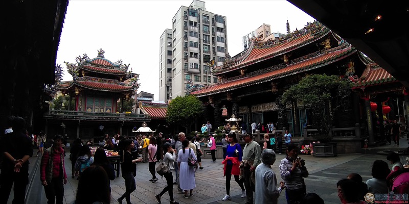 站在人潮洶湧的龍山寺旁邊進香通道拍攝這兩張照片一開始讓我有點心驚膽戰,深怕佔用太久時間擋住通道,但沒想到輕鬆地轉一圈,照片就拍完了,甚至沒有仔細看螢幕中往上往下的指示。