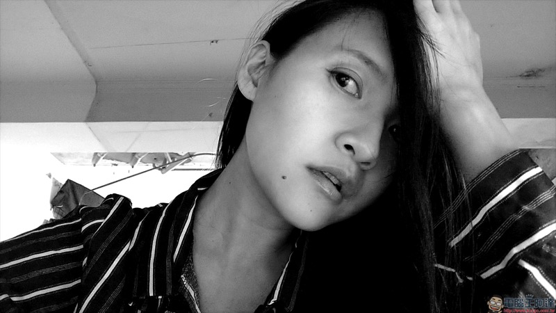首先要介紹的是層次分明、對比強烈的黑白效果,適合拍景物或是在比較寧靜的場所;但就算自拍也能呈現出被攝者皮膚的質感。