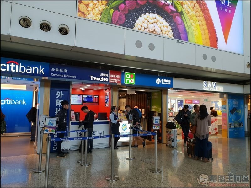 首先當你抵達香港時,由於沒有辦漫遊,建議大家可以直接連機場的免費 WIFI即可,速度很快。領行李後往出境大庭時只要往中間的區域走就會看到中國移動的店面: