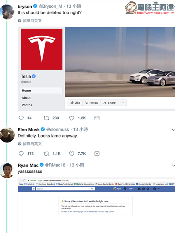 題外話:網友們也開始擔心管理 Tesla 和 SpaceX 的小編要失業了(誤)