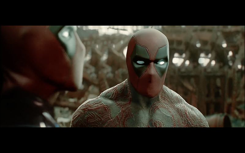Mightyraccoon! 版本的電影預告片將死侍加入其中,因此可以看到大量的死侍出現在片中,從星爵、鋼鐵人等角色,全部都變成死侍面罩: