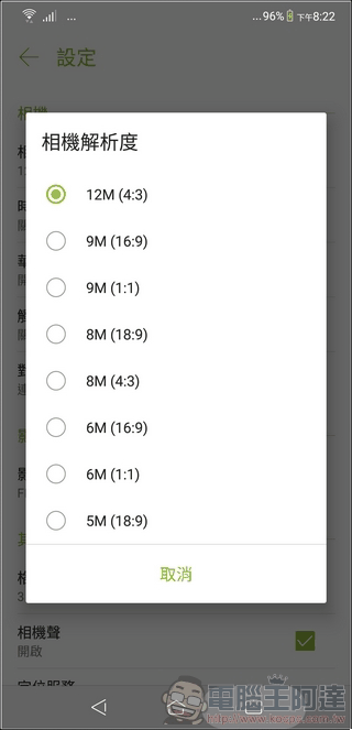 ZenFone 5 拍照設定項目如下,拍照最高解析度為 1200萬、錄影最高為 4K 畫質: