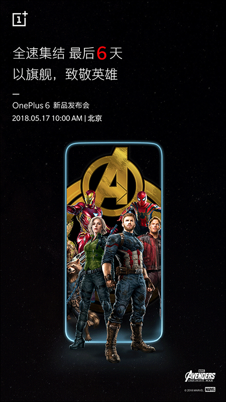 另外近期《復仇者聯盟3:無限之戰》終於在中國上映, OnePlus 身為電影合作夥伴,也積極大力推廣這款新機將推出「漫威復仇者聯盟限定版」的消息: