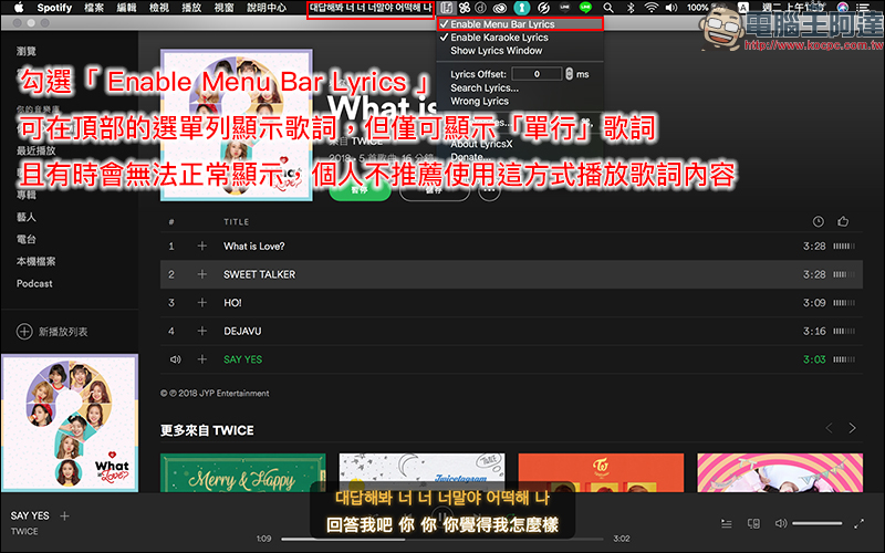 LyricsX 歌詞顯示 App ,支援 Spotify 、 iTunes 顯示歌詞不受限