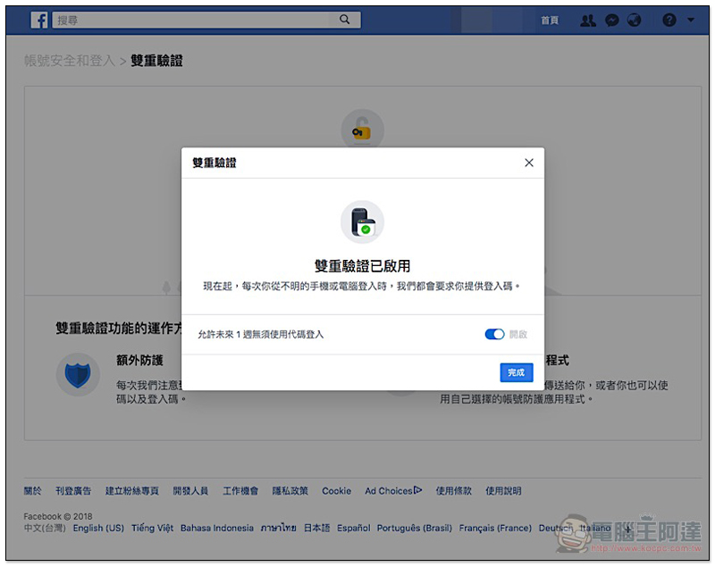 Facebook 雙重驗證 新增 Duo Mobile 與 Google Authenticator 驗證(教學)