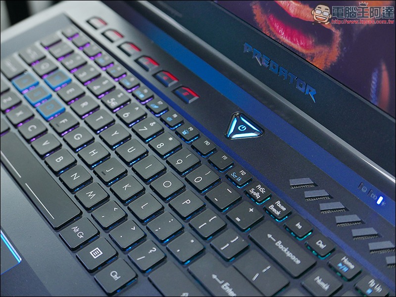 筆電的上蓋有著藍色的 Predator Logo 。: