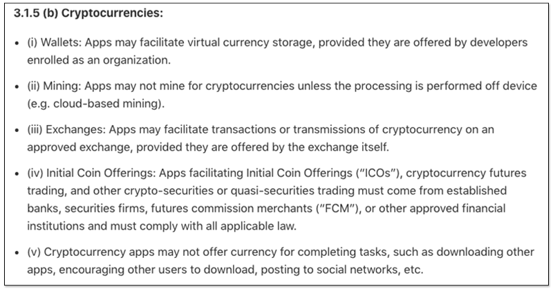 App Store 審查指南已針對數位加密貨幣(Cryptocurrency)提出明確規定: