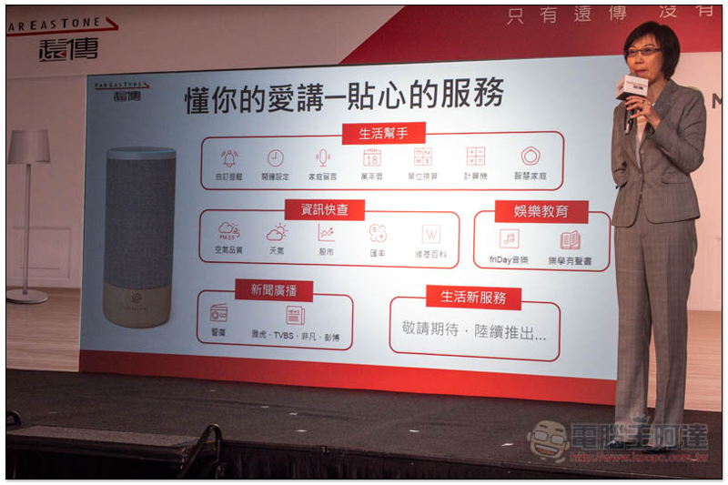 近年智慧音箱產品在國外非常的夯,但因為幾乎都只支援英文,因此對台灣使用者來說很難入門。而為了讓台灣用戶也能享受到這最新科技帶來的便利生活,遠傳電信就推出「遠傳問問智慧音箱」,藉由在地化的語音調教,讓使用者用台灣標準國語就能控制,只要喊出 “愛講愛講” 喚醒指令,即可輕鬆啟動語音助理愛講: