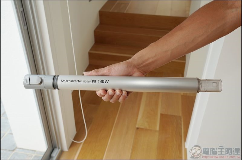 伸縮桿原始長度是這樣,裝上機身與吸頭後,差不多 90 公分,適合身材嬌小的女性或願意幫忙家務的小朋友使用: