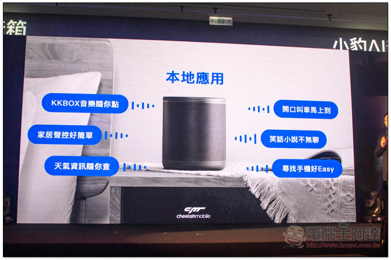 繼遠傳智慧音箱之後,又有一台支援中文語音的 AI 音箱登台了!今日獵豹移動在台推出首款 小豹 AI 音箱 ,搭載旗下獵戶星空研發的獵戶語音 OS,標榜喚醒率高達 95% 以上,同時也跟台灣多個在地化服務供應商合作,包括:KKBOX、TaxiGO 等。而首月購買的消費者,更能獲得價值 NT$3,000 的好禮。