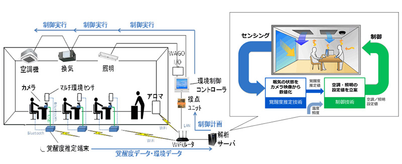什麼狀況下會想睡覺?剛吃飽、太溫暖、感冒等因素總是讓人在上班時哈欠連連,日本資訊科技公司 NEC 與大金工業正在合作開發一款適用於辦公室的 AI 連動空調系統,號稱可以藉由環境溫度與的刺激來提高生產力。這個系統主要以 AI 攝影機監測人的臉部表情與動作,透過 NEC 的臉部辨識技術偵測員工眼瞼活動的每秒速率是否減少來判斷是否正在打瞌睡,再連動到空調系統加大冷氣力度,暫時降低室內溫度已讓員工保持清醒。