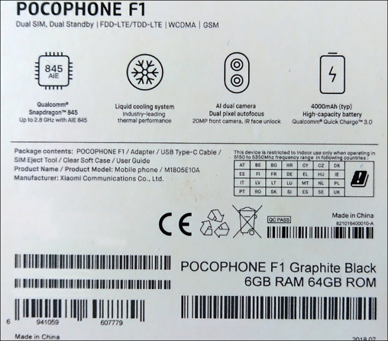 其實早在 6 月下旬, POCOPHONE F1 就已現身台灣 NCC 認證,從 M1805E10A 的型號與上述包裝盒上相符。: