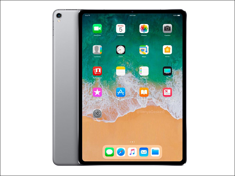 新款 iPad Pro 將有 11 吋和 12.9 吋兩種尺寸選擇,螢幕佔比將大幅提升,並將導入 FaceID 技術,日前曾有傳聞 TouchID 指紋辨識鍵會改至機身背面以彌補 FaceID 在橫向解鎖的弱勢,但也有可能直接取消 TouchID 指紋辨識。此外,傳聞會取消 3.5mm 耳機孔,並且將介面由 Lightning 改為 USB-C ,並將隨盒搭配 18W 的 USB-C 充電器。: