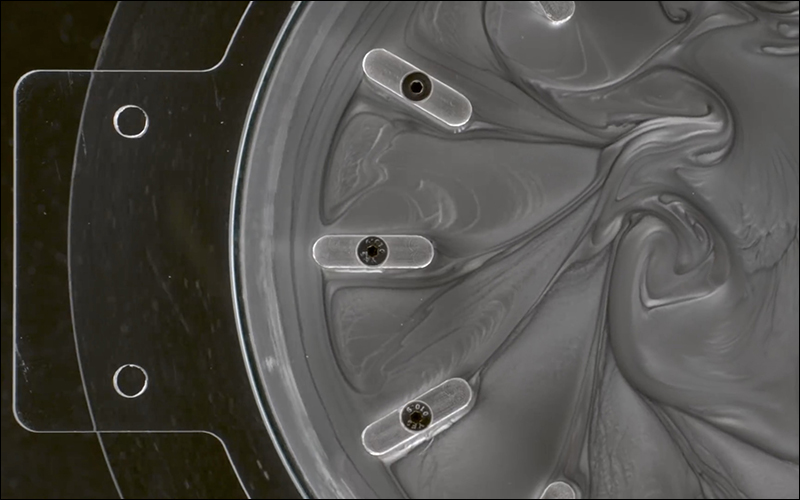 團隊在拍攝這張水面波動的畫面,使用器材在水中央高速轉動,讓水面製造出流動的效果。另外,針對小水珠的滾動效果則是用了氣球擺入水中、再將氣球刺破製造出水的震動而成。: