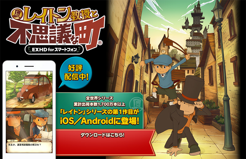 老牌人氣解謎遊戲《雷頓教授》系列深受許多玩家喜愛,但在手機版本上所見到的只有最新作的《雷頓的神秘之旅:卡翠愛兒與大富翁的陰謀》,過去的好幾代經典系列僅有在 DS 平台上才能玩到,現在 LEVEL-5 正式將初代元祖《 雷頓教授與不可思議城鎮 》(日:レイトン教授と不思議な町 EXHD for スマートフォン / 英: Layton: Curious Village )搬上手機平台,並且已經開放日本、歐洲與美國購買下載,近期還將全球開放。