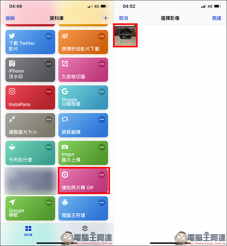 使用相機進行連拍,只要透過 Siri 捷徑也可以直接把它轉換成 GIF 動圖。在捷徑 App 點選「連拍照片轉 GIF 」,接著選取相簿中的連拍照片。(下載連結:點我前往):