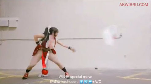 除了Coser照外, 有在練空手道的A.K. Wirru也拍了一小段電玩風格,再現不知火舞的基本動作與必殺技: