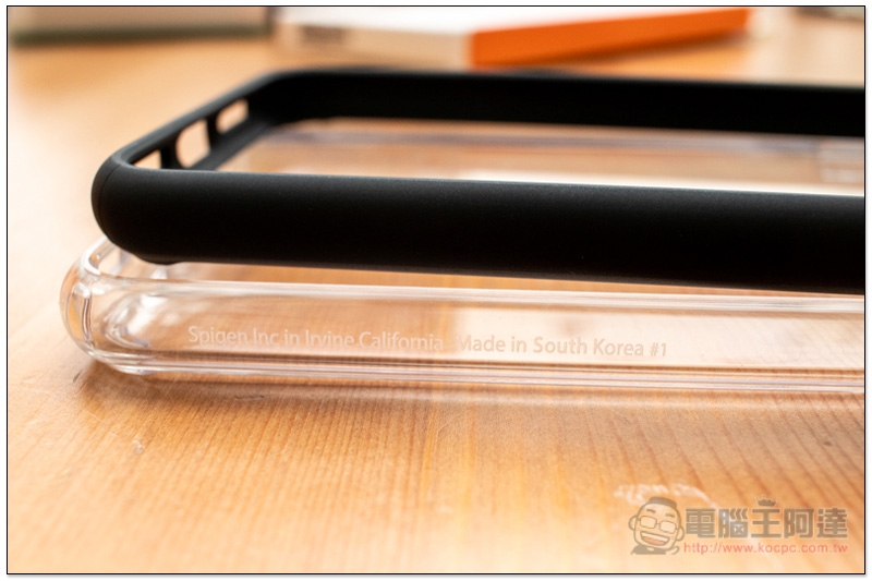 晶透透明款側邊還有寫著南韓製的英文字樣,霧黑款雖然沒寫,但其防護與功能性都一模一樣: