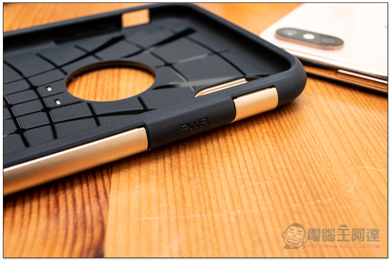 裡面這塊 TPU 真的非常軟,怎麼握壓、扭曲變形都沒問題,代表說你完全可以放心裝上你心愛的 iPhone Xs/Xs Max,完全不會有任何刮傷:
