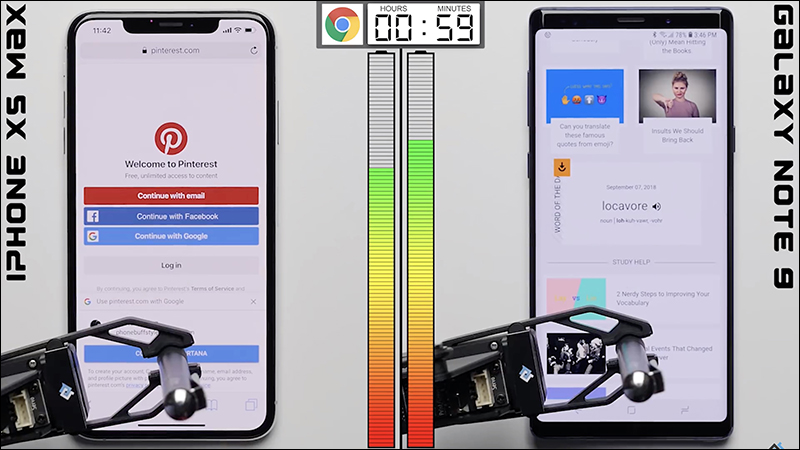 iPhone XS Max 和 Samsung Galaxy Note 9 續航力比拼 ,超公平、用機器人來操作