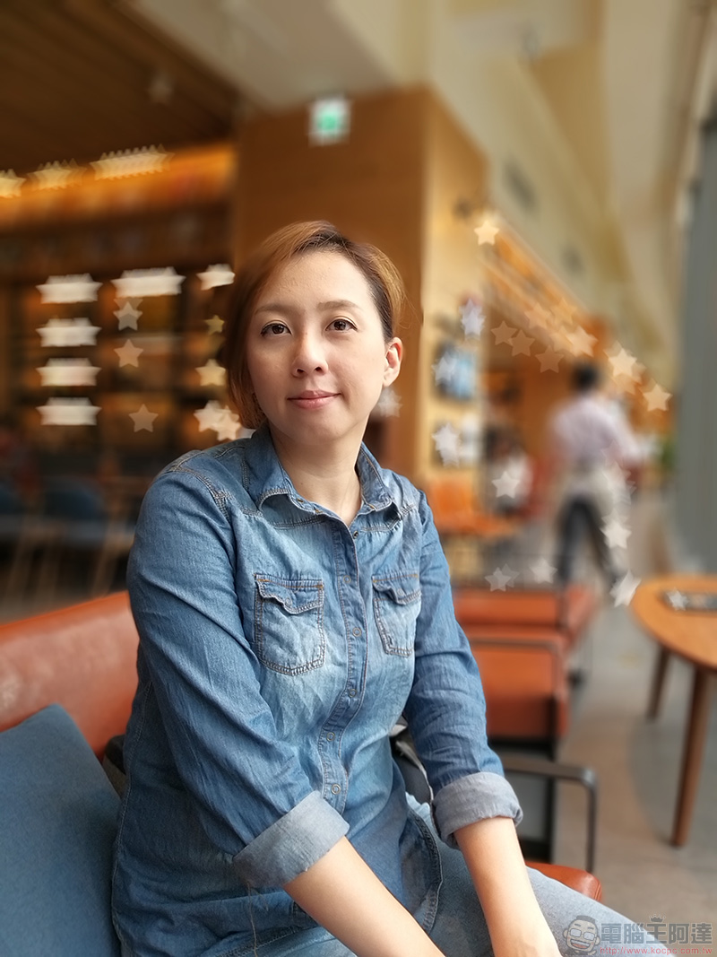 另外,當系統判定你的身後有燈光時,還會出現後面光點形狀的選項供你挑選喔!下面為了讓效果更容易被大家看清楚,所以我將背景模糊調到最強,並且選用星星圖樣去突顯,如果是在像是酒吧或採用單點式照明的場所應該會很漂亮。