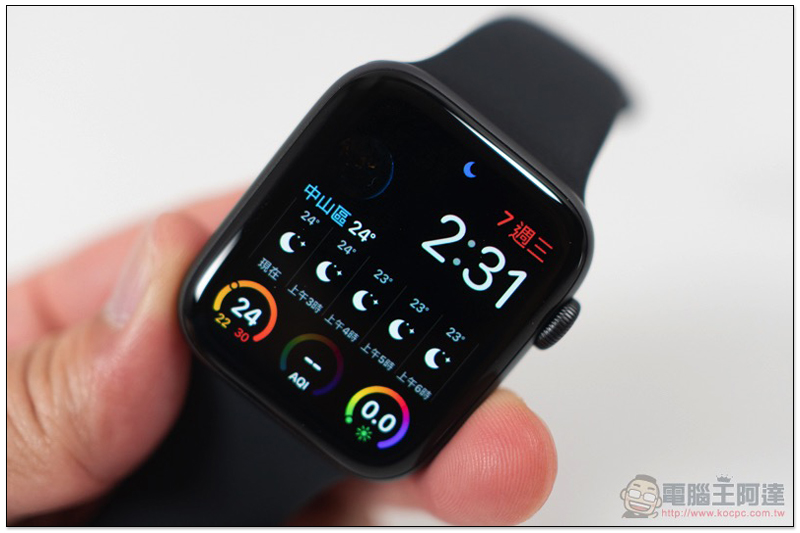 是說這個介面基本上也意味著 watchOS 的複雜功能已經進入了下一個世代 — 先前主要的小圖示,現在也改成了可以標示更多訊息的圓弧狀與圓形版本,可以讓你快速掌握紫外線、空氣 AQI 指數、高低溫的程度為何。而舊小編直接沿用 Series 3 的功能會發現,還有許多開發者還尚未跟進這樣的資訊顯示版面。所以有些功能還是只能在與先前錶款通用的錶面中才可以選擇設定錶面的應用功能。這點就有待各開發者能夠盡快跟進提供對應的顯示與捷徑機能了。