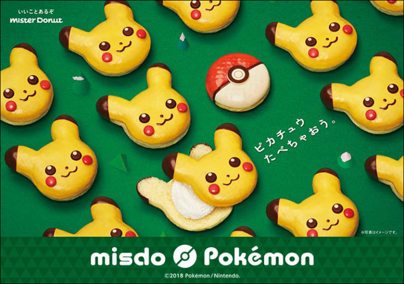 同時,知名連鎖甜點品牌 Mister Donut 於日本也推出期間限定的寶可夢甜甜圈,在寶可夢系列有皮卡丘造型和寶貝球造型的甜甜圈兩種選擇,售價為 216 日圓含稅(約合新台幣 59 元)。: