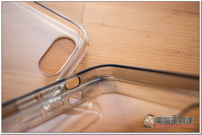 左邊是透黑,右邊則是透明,質感真的無話可說,幾乎是我目前拿過這麼多透明保護殼中,數一數二精緻的,沒想到這麼好看外型也能擁有高防護性: