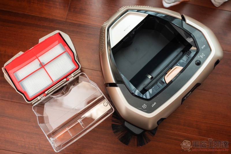 在大塵盒與大濾網的配合下,更是可以減少清理的次數,真的比起筆者先前所用過的掃地機器人要省事很多: