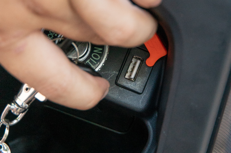 龍頭下方則是有著出乎意料實用的兩個置物空間;右側則是鑰匙孔與 USB 充電孔: