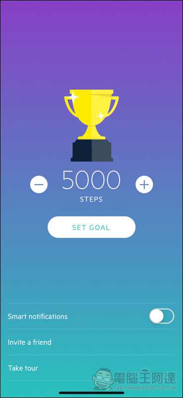 也提供設立每日目標的功能,絕對是一萬步起跳才夠(如果你又愛吃零食,那再倍數往上乘吧):