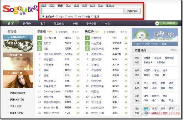之後就會顯示所有相關的曲目,由於相同歌名的曲子也不少,點擊試聽會跳出一個試聽的視窗叫「搜狗音樂盒」:
