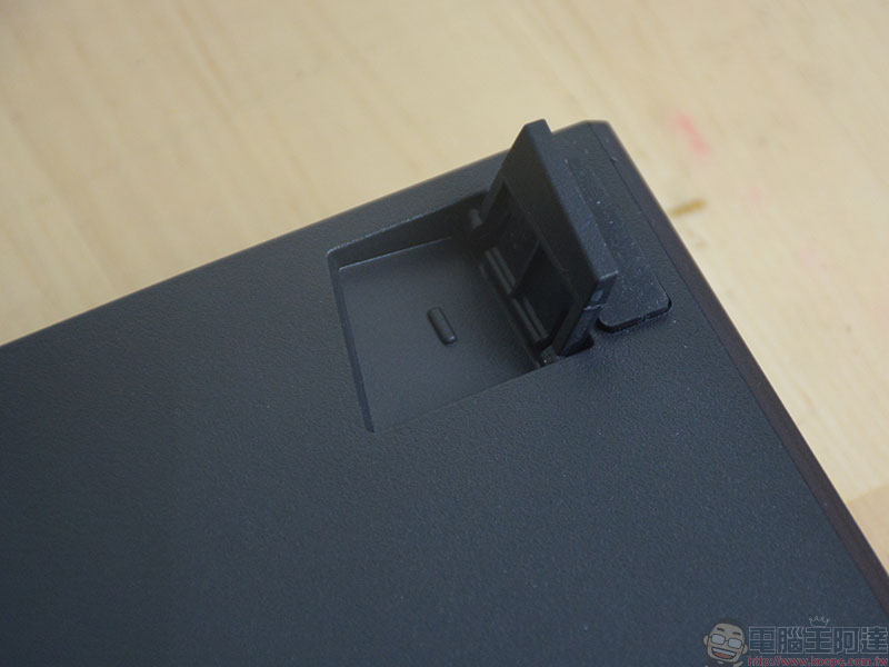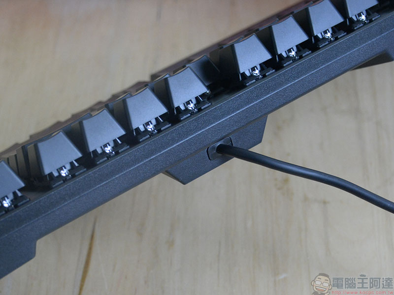 在鍵盤下緣中央位置配有一個方便其他像耳機、麥克風走線的凹槽, 線材不會爬的滿桌都是,也不容易影響到滑鼠的使用空間。