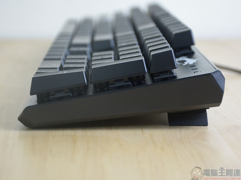 要知道並不是用同一種軸體的鍵盤就會有一樣的使用感,筆者也曾經入手過用了一次就憤而收起來的 Cherry MX 青軸鍵盤,GK60 將 Cherry MX 青軸的特色整個呈現出來,且對於一般使用者來說,懸浮式設計是一個好選擇,且整個鋁合金拉絲上蓋質感不錯,筆者個人對這種外型緊湊的鍵盤頗有偏好,不過如果你有用手托的習慣,這款鍵盤並沒有附手托,請自行另外準備。另外,GK60 也有提供紅軸版本,喜歡打字觸發力道輕一點與聲響小一點,但又不想放棄機械式鍵盤的爽脆的人可以參考一下。個人覺得小小遺憾的是線材為固定式,不能隨時插拔換鍵盤,對筆者個人算是小小困擾。