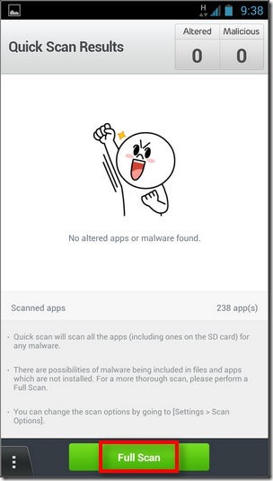 更新完病毒碼後就先檢查一下自己的手機裡面有沒有病毒吧,執行「Start Scan」,這個階段是快速掃毒,兩下就完成了: