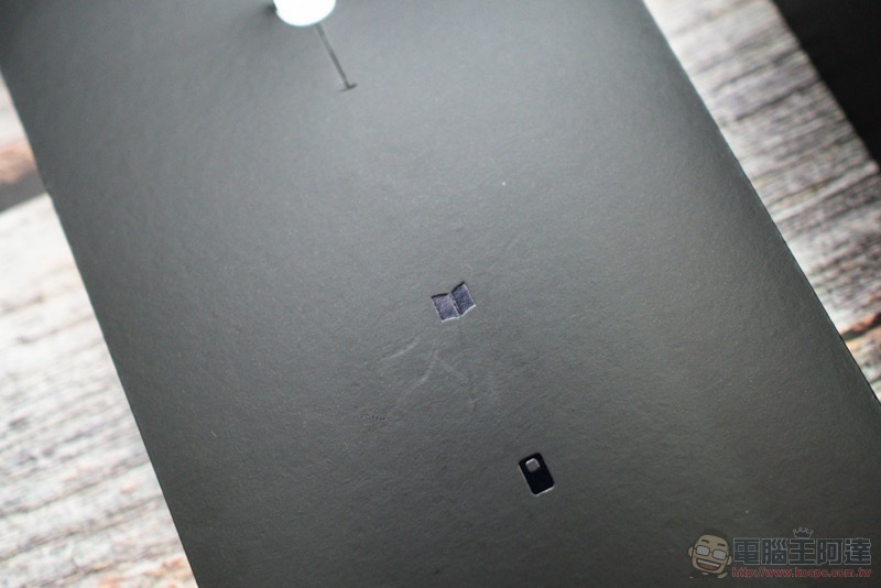 在鑲著退卡針的配件盒裝上,可以看到說明書以及手機殼的標示: