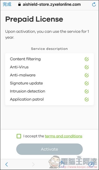 在AiShield按下開始,就會先詢問你是否啟動資安防護,合勤隨機附贈了一年的AiShield企業集資安防護服務,當然你也可以先試用免費版本一個月以後在開啟,不過認真地說,AiShield本身就是一個商業型的防火牆,提供了類似合勤USG系列產品所提供的UTM防禦功能,所以建議可以直接啟動,常保電腦、資料安全:
