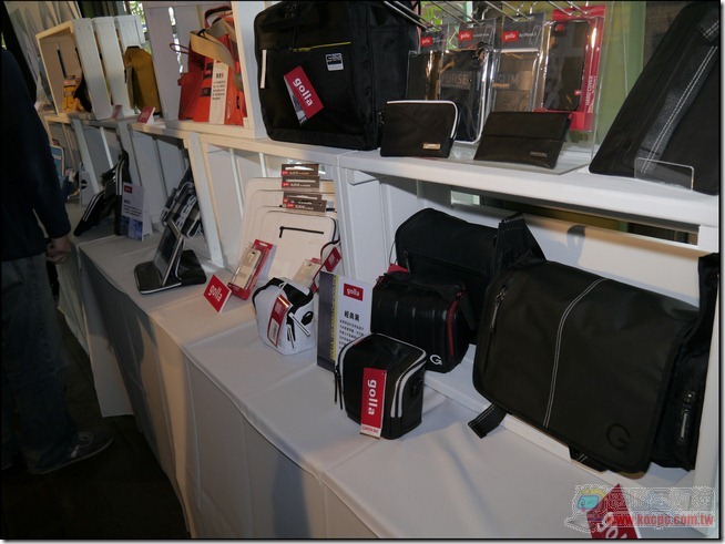 現場產出了「Golla」的各項產品,可看到除了隨行袋以外,耳機、保護殼、皮套…,Golla有相當出色的產品: