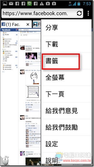 Puffin Web Browser也可以匯入內建瀏覽器的書籤內容,只要在畫面中按下「Menu鍵」—>執行「書籤」—>選擇「設備上的書籤」,就可以讀取內建瀏覽器內的所有書籤(Google帳號裡的書籤):