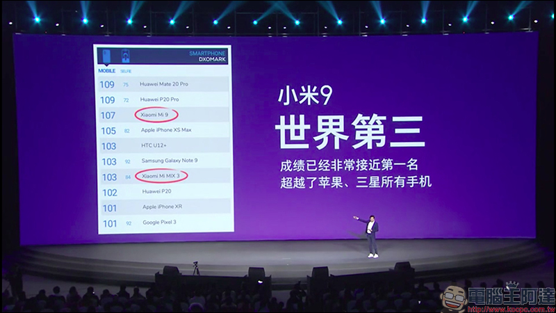 在這次小米 9 的拍照方面,獲得 107 分名列第三,雖未能成為第一但這分數已經超越了 iPhone XS Max 等手機: