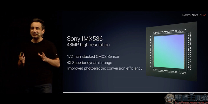 接著談到相機,紅米 Note 7 Pro 雖然和日前在中國發表的紅米 Note 7 一樣搭載 4800 萬畫素+500 萬畫素雙主鏡頭相機,但這次在紅米 Note 7 Pro 採用的並非先前的 Samsung GM1 感光元件,而是和小米 9 相同的 Sony IMX586 感光元件:
