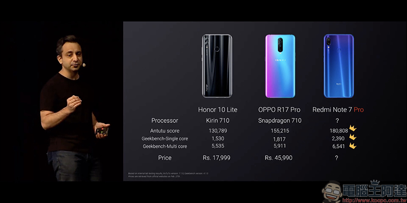 與競品搭載 Kirin 710 處理器的 Honor 10 Lite 和搭載 Qualcomm Snapdragon 710 處理器的 Oppo R17 Pro ,紅米 Note 7 Pro 無論在安兔兔跑分、 Geekbench 的單核/多核跑分都完勝,至於價錢當然也是非常殺(看到文末就揭曉囉!):