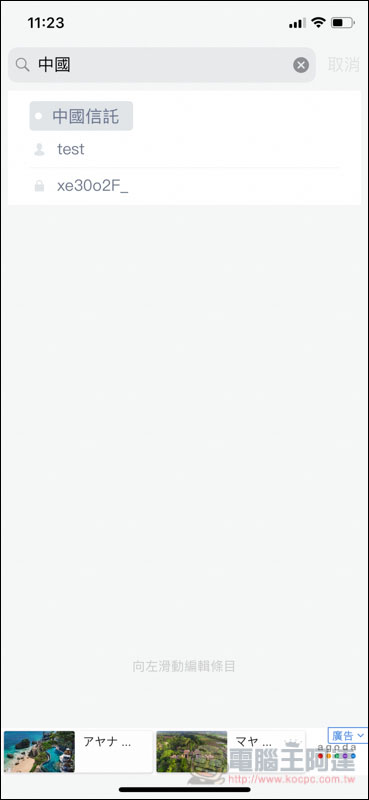 帳密越來越多時,它也有搜尋功能,輸入關鍵字即可快速找到: