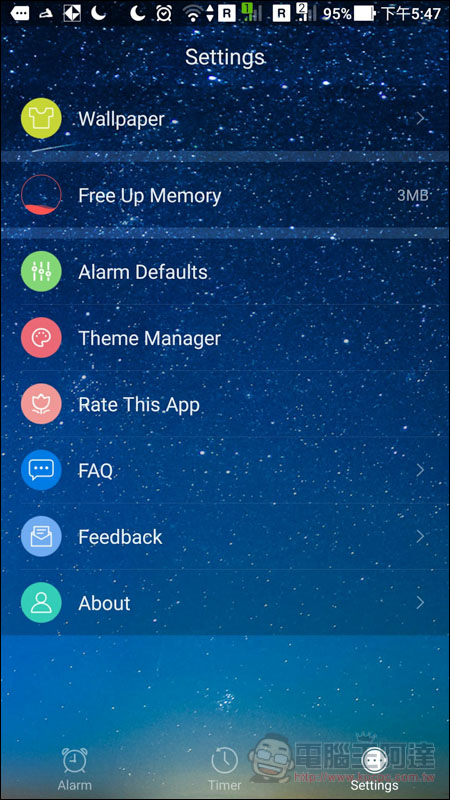 Settings 中也有一些e翁能可以調整,像是背景(Wallpaper)、清除快取記憶體(Free Up Memory):