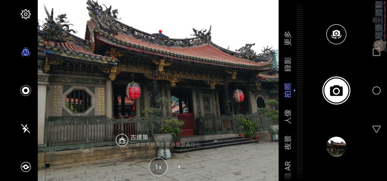 只要畫面帶到,幾乎可說是一秒觸發,而且還能區分建築跟古建築,真是太厲害了。除了這些之外,還有 AR、慢動作跟全景模式可以自己手動玩玩,很有意思喔!