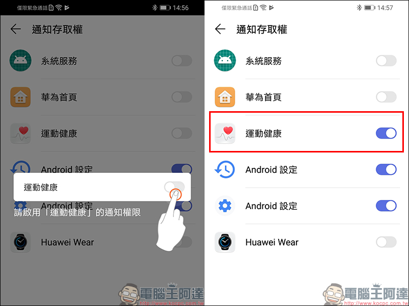 配對完成後,可別忘了前往通知存取權將「運動健康」設為開啟,才能獲得即時通知哦!